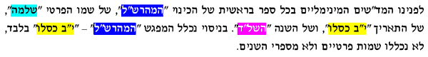 דוגמא מן הניסוי: מהרש"ל הוא כינויו של רבי שלמה לוריא – מגדולי חכמי התורה. הכינוי הוא ראשי התיבות של "מורנו הרב רבי שלמה לוריא". הוא נפטר ביום י"ב כסלו בשנת השל"ד. לפנינו קטע מטבלה ובה 114 טורים, שנקבעה על ידי מד"ש מינימלי של התאריך "י"ב כסלו":